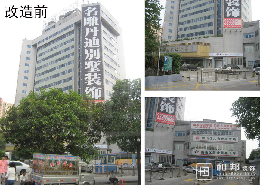 本設計以灰色調為主把大廈變得更加高端,再把大廈頂樓的建筑用東西包圍了起來,顯得沒有改造前那么亂。
