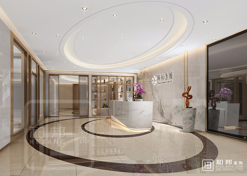 本案使用鯤鵬、迎客松等元素結合 ,綠色辦公的理念,表達其企業文化,寄予集團合作共贏、蓬勃向上的期望。